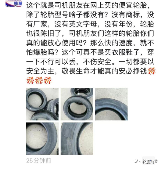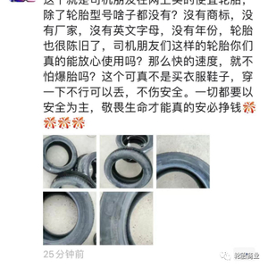 司机师傅在网上买的便宜轮胎,除了轮胎型号啥子都没有!没有商标、没有厂家、没有英文字母、没有年份!