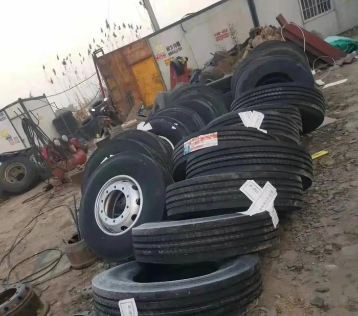 这轮胎不仅没有商标啥啥的,整体看起来还非常陈旧,而且胎侧磨标的痕迹非常明显,这可不是买的新轮胎,这是直接买到了人家的加工了不少的轮胎呀,也不知道司机师傅买一条轮胎便宜多少钱,能接受这样的轮胎!