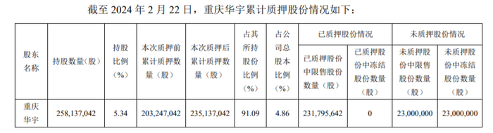 随着该笔再质押完毕,华宇集团累计质押了齐鲁银行股份235,137,042股,占其持有股份数量的91.09%。质押融资资金的用途为经营及投资。