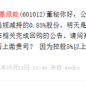 近日,有投资者在“上证e互动”平台上对隆基绿能提问:公司股东高领资本在4月19号发公告称未来一个月内要购回违规减持的0.85%股份。17是截止日期的最后一个交易日,截至目前还没有看到公司发布相关完成回购的公告。请问高瓴是否已经完成全部违规减持股份的回购?所得差价是否上缴贵司? 因为控股5%以上的股东增减持要发布公告。