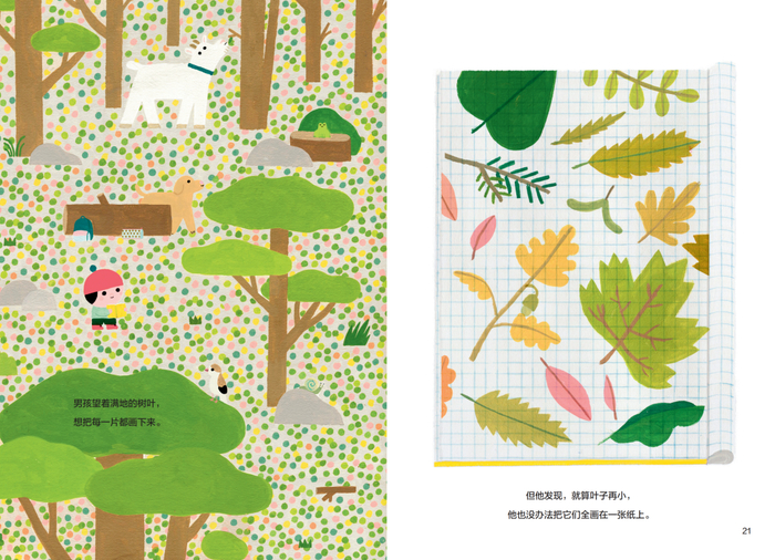 这是一本富有哲理的故事绘本。一个小男孩,他对窗前的大山非常着迷,他想把山画下来,但总觉得自己画得一点儿都不像。于是,男孩决定爬上山,仔细地看一看。途中,他看见了一只山羊,就把山羊画了下来,还有鸟儿、小溪、树叶、小花……不知不觉中,男孩爬到了山顶。他坐下来,看了看他所有的画,还是觉得少了点什么……到底山是什么样的呢?