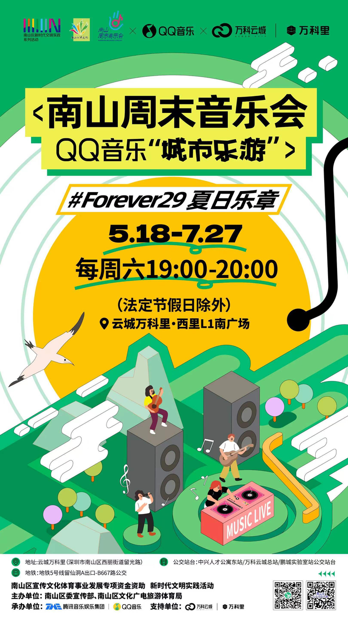 十场周末音乐会精彩绽放!QQ音乐「城市乐游」南山周末音乐会与你不见不散!