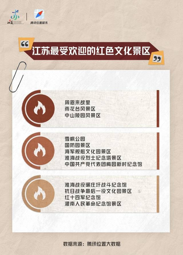 《报告》显示,周恩来故里、雨花台风景区、中山陵园风景区,以及淮海战役烈士纪念塔景区、淮海战役碾庄圩战斗纪念馆等成为最受欢迎的红色文化景区。可以看出,与红色人物、淮海战役有关的景区,吸引了大批游客打卡,同时也显示出党史、军史等红色历史文化吸引力和影响力的不断放大,这也为江苏省着力发展品质红色文旅带来良好机遇。