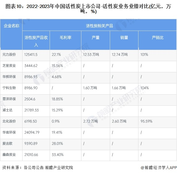 3、活性炭行业上市公司业务业绩对比