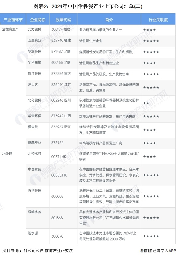 2、活性炭行业上市公司业务布局对比