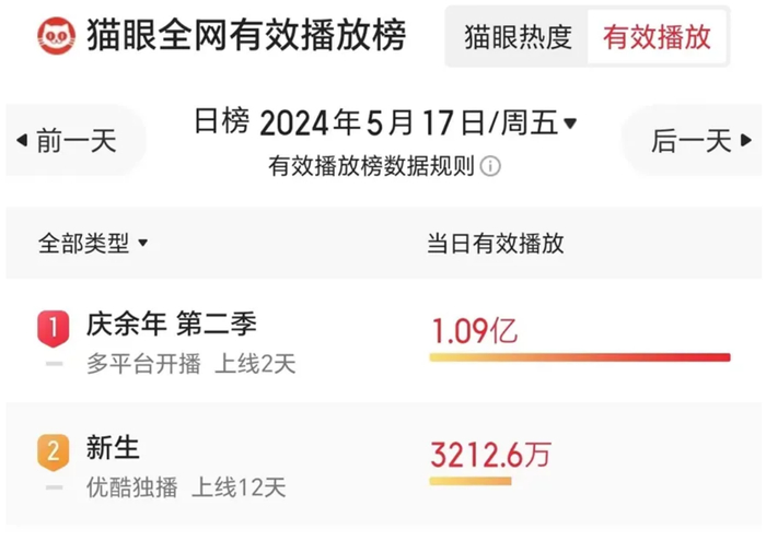 5月16日,备受瞩目的《庆余年第二季》开播。当日,该剧便创下多项纪录。