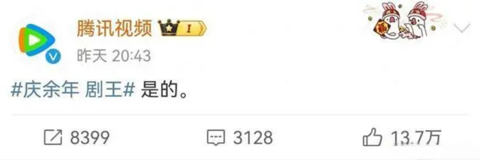 腾讯视频甚至在#庆余年剧王#话题下大方承认:是的。