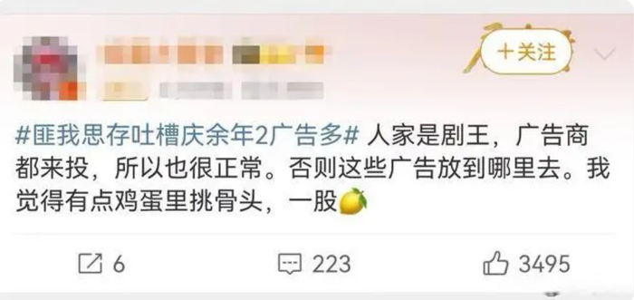 在创下多项纪录的同时,《庆余年第二季》也因广告多而被观众吐槽。