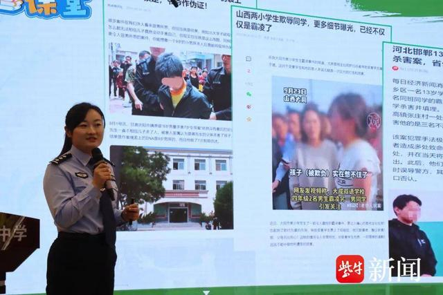 将“未病”防治到一线,把法律普及到课堂。“鹤翔课堂”主讲人周亚婷的宣讲既有典型案例分析,也有法律成本核算,还有防范要点指导。周警官的课教学互动,解疑答惑,描画精准,实操性强,新区的同学们现场反应热烈,远离欺凌意识根植于心。