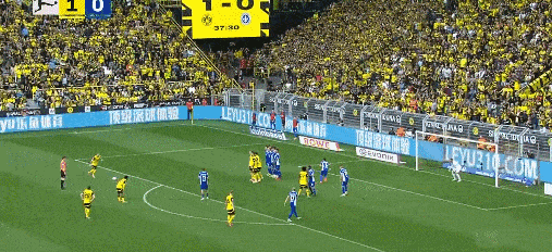 罗伊斯本人也没有在这样意义非凡的比赛中留下遗憾。第38分钟,他主罚禁区左侧任意球,一脚劲射直挂球门死角,用这个“世界波”打入在多特蒙德队效力期间的主场第100个进球,更让全场8万余名球迷陷入疯狂。比赛结束后,罗伊斯更是前往最忠诚球迷所在的南看台致意。