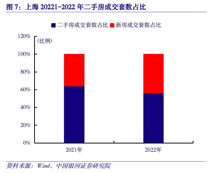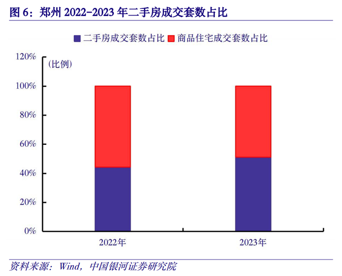 收购二手房以盘活存量住房市场。由于部分居民购房以置换为主,即售出在手存量住房后获得售房款,进而购买住房。按照以上流程,存量住房售出是置换的第一步。以郑州为例,2023年二手房成交套数占当地住宅成交总套数(二手房成交套数+商品住宅成交套数)的51.1%,按面积口径计算该比例为48.32%,即二手房成交占比已相当可观。在楼市相对成熟的上海市场,2021、2022年二手房成套数分别占全市住宅总成交套数(二手房成交套数+商品住宅成交套数)的64.28%、56.37%。政府主体收购二手房有望助力商品住宅市场去化。