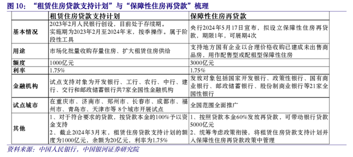 “按照国务院常务会议决定,2023年2月,人民银行创设租赁住房贷款支持计划,在重庆市、济南市、郑州市、长春市、成都市、福州市、青岛市、天津市等 8个城市开展试点,支持市场化批量收购存量住房、扩大租赁住房供给。试点支持对象为开发银行、工行、农行、中行、建行、交行和邮政储蓄银行共7家全国性金融机构。对于符合要求的贷款,按贷款本金的100%予以资金支持。实施期为2023年2月至2024年末,按季操作。属于阶段性工具。”截至2024年3月末,租赁住房贷款支持计划的额度为1000亿元,余额为20亿元,利率为1.75%。