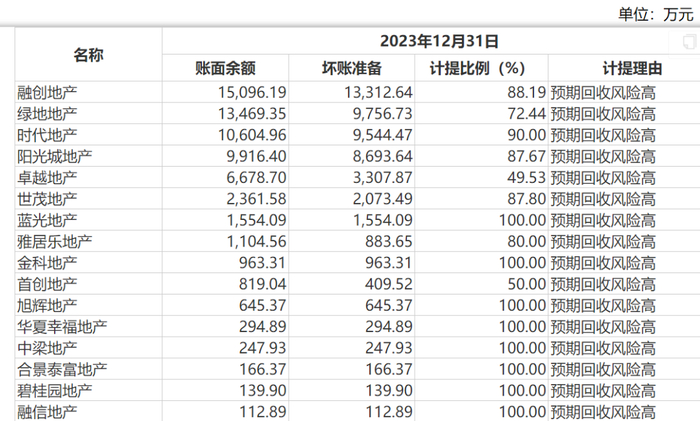 前面有几家不是100%,是因为公司收了一部分保证金,对扣除保证金剩余部分是按100%计提的。
