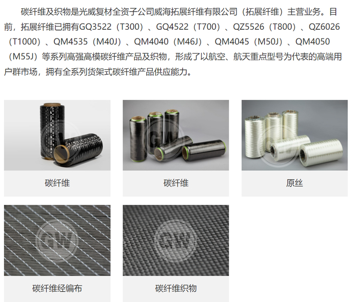 光威复材以碳纤维制备及工程化国家工程实验室和山东省碳纤维技术创新中心、国家级企业技术中心为支撑,业务涵盖碳纤维、经编织物和机织物、系列化的树脂体系、各种预浸料、复合材料构制件和产品的设计开发、装备设计制造、检测(CNAS/DIlAC认证国家和国防实验室)等上下游,依托在碳纤维领域的全产业链布局,成为复合材料业务的系统方案提供商。