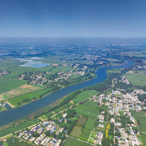 5月7日航拍的涡河。蒙城县岳坊镇戴尧村从涡河引水注入藕塘。本报记者 徐旻昊 摄