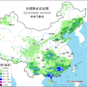昨日,我国降雨区域广,南北方降雨都比较强,广西、广东等地持续出现强降雨,广西南宁大暴雨;东北、华北等地以雷雨和强对流天气为主,河北石家庄小时降雨量达到40-70毫米。预计20日至21日,北方强对流天气减弱,华南强降雨还将持续,今天需要重点关注广东和福建沿海地区。
