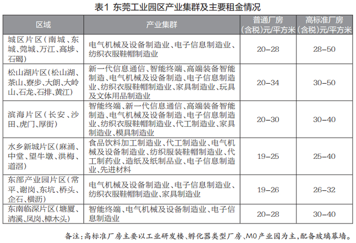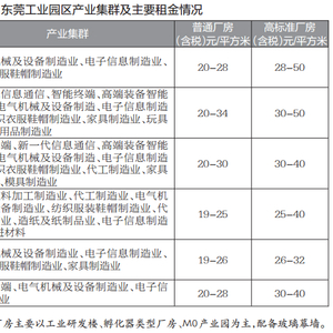为拓展产业发展空间及解决工业园供需矛盾,东莞市政府提出“工改工”三年行动计划,截至2021年年末,东莞占地面积超过2万平方米的工业园区共2611个,占地3.79亿平方米(若按容积率2.0计算,建面超7.5亿㎡),其中土地面积2万~5万平方米的土地约800块、5万平方米以上的园区共1811个。东莞现有存量普通工业园租赁情况分片区有所不同,其中城区片、临深片、松山湖片区租金单价较高,普通厂房终端租金(含管理费)在24-35元/平方米不等;滨海湾(虎门、长安等)片区价格在22-32元/平方米;水乡片区、东部工业园片区价格则在18-30元/平方米。另南城片区等新型产业项目出租用于轻资产高新企业的,租金单价在40-60元/平方米以上。(见表1)