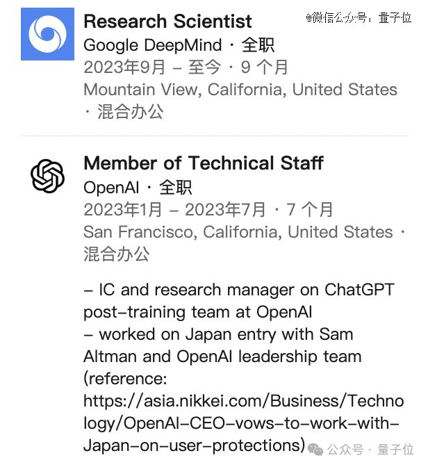 还有又回到谷歌担任DeepMind研究科学家的Shane Gu,仅仅只在OpenAI待了7个月,其中带领团队进入了日本市场。在此之前他曾在谷歌待了四年。