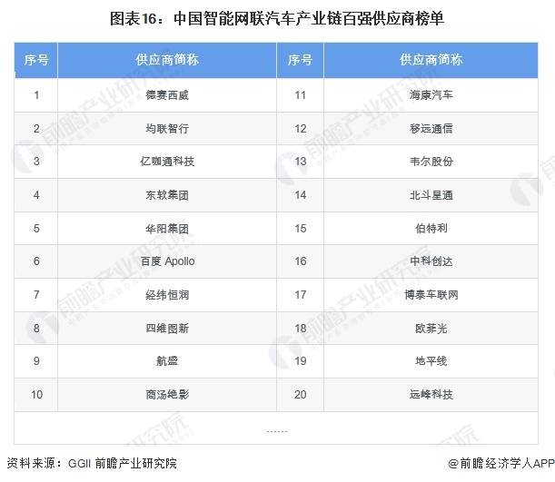 ——智能网联汽车企业竞争格局:德赛西威位于产业链百强供应商榜首