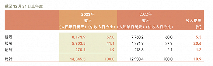 但需要警惕的是,特步的鞋履业务增速放缓,2023年特步鞋履收入81.72亿元,同比增长只有5.3%,对营收的贡献也从2022年的60%下降至2023年的57%。