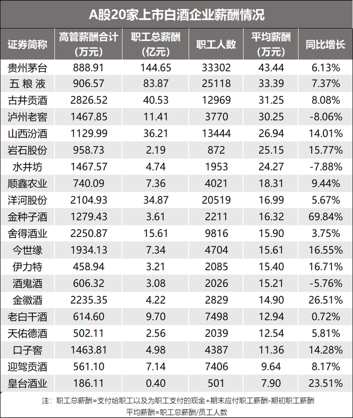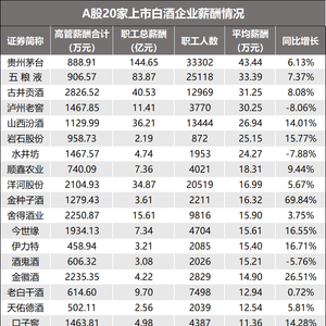 白酒行业薪酬分化!茅台人均超43万