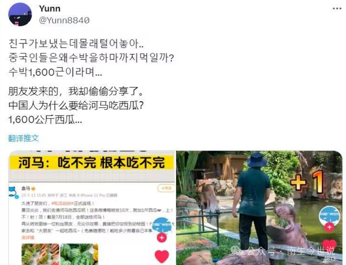 河马“一口一个瓜”的视频,曾引起轩然大波,众多韩网友愤怒留言——“这种浪费行为,永远不会出现在韩国!”
