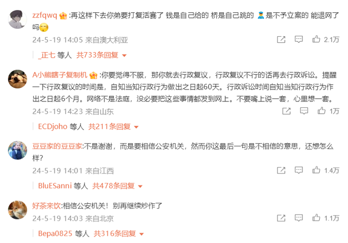 这在警方通报的第三部分得到了回答。对于个别网民为蹭流量、博眼球、编造谣言、寻衅滋事,各地警方已经依法开展查处。