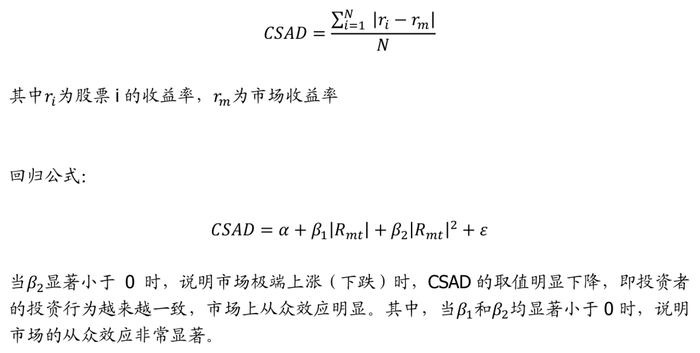 Chang(2000)提出了横截面收益绝对偏差(CSAD)模型,构建方法如下: