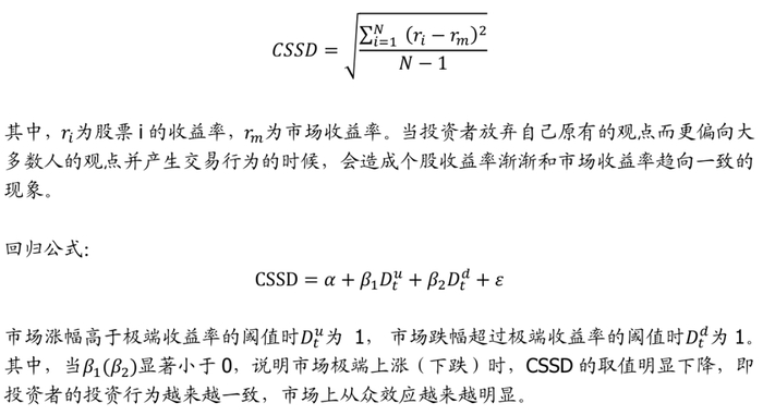 Christle & Huang(1995)提出了横截面收益标准差(CSSD)模型,构建方法如下: