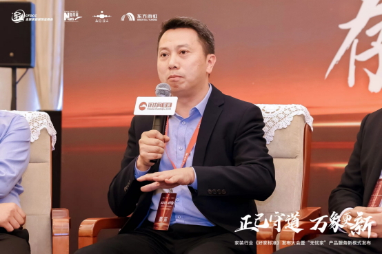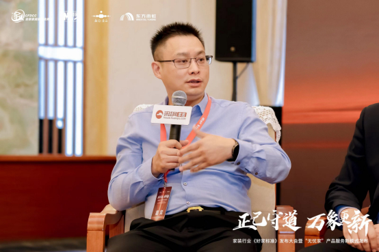 御鼎国际董事长刘金霖强调好家的标准是不断更新迭代的。一是装修质量标准,行业持续升级改进,形成高质量标准;二是装修服务标准,包括落地、安装、交付,为业主提供更优质的服务;三是设计标准的进化,以人为本,满足业主对家的个性化需求。