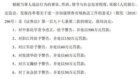 根据公告,新疆证监局处罚决定包括:对中泰化学责令改正、给予警告、并处以500万元罚款。对时任中泰化学董事长杨江红罚款250万元,对时任中泰化学财务总监彭江玲罚款150万元。另外还有5名高管分别被罚款50-60万元不等。