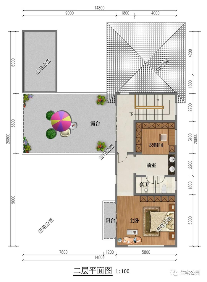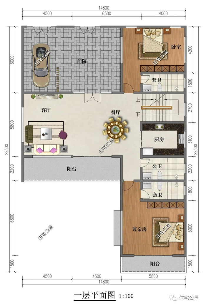 占地尺寸:14.8m × 22.3m