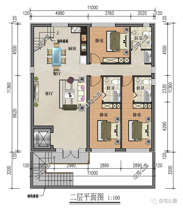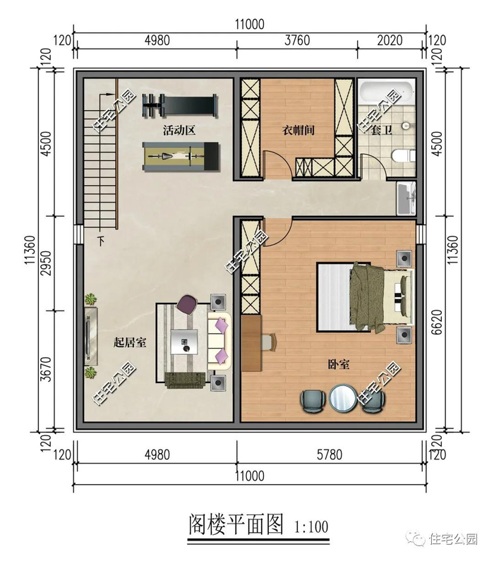 占地尺寸:11m × 11.36m