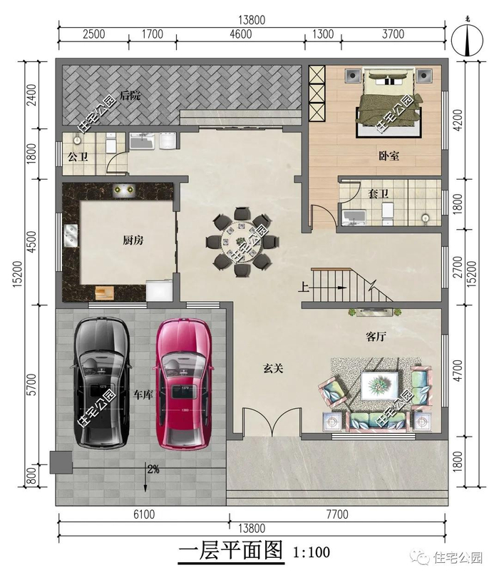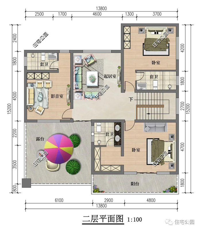 占地尺寸:13.8m × 15.2m