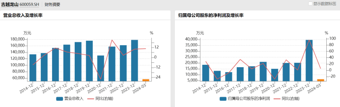2024年一季度,古越龙山实现毛利率36.54%,同比下降0.07个百分点,招商证券认为,“主要系中高档酒增速低于整体,黄酒产业园目前处于小规模试运营状态,对毛利率影响还未体现。”
