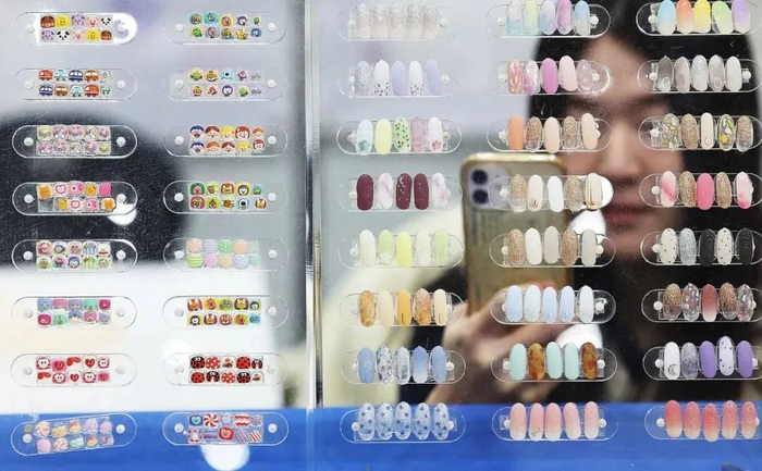 通常来说,穿戴甲分为机器款和手工款,机器款颜色简单价格低,手工款则更精致,需要工人们像线下的美甲师一样,一笔一笔地在塑料甲片上画画。