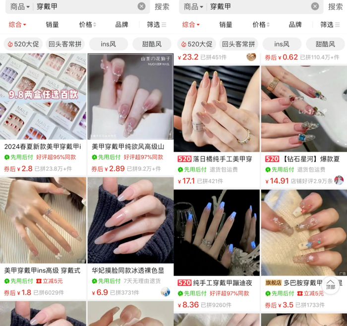 购物平台上各式各样的穿戴甲
