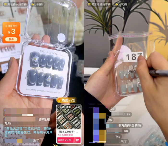 抖音上,卖穿戴甲的直播间