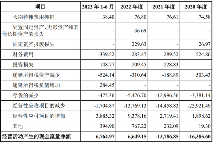 此外,2020 年度和 2021 年度公司经营活动产生的现金流量净额低于净利润的原因还包括公司将客户支付的信用证在银行进行押汇借款,将收到的信用等级一般的银行的承兑汇票贴现,相关现金流入计入筹资活动现金流入。如将前述现金流进行模拟还原计入经营活动产生的现金流量,则2020年度、2021年度经营活动产生的现金流量净额分别为-1,113.87万元和-10,089.35万元。