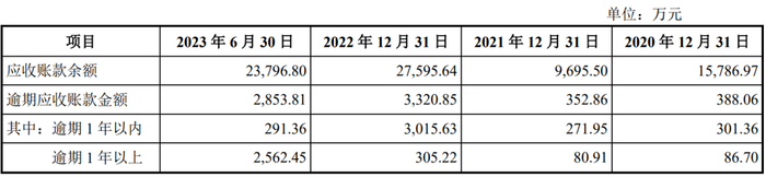 2020 年末、2021 年末和 2022 年末,公司逾期应收账款主要为逾期 1 年以内款项,2023 年 6 月末公司逾期 1 年以上应收账款金额较大,主要因前期已单项计提坏账准备的应收账款逾期超过 1 年。