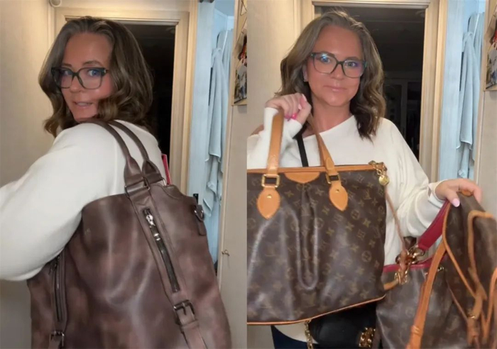 Kaylee以前最常背的是一款kate spade的包,也经常从沃尔玛、Tjmax这种平价超市、商场买包,总之主打一个随意,能背就行。