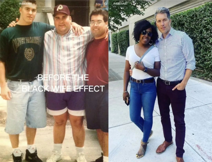 最近洋抖上流行起了一个叫做“Black Wife Effect”的梗。大概意思就是娶了黑人妻子后,受到她们潜移默化的影响,时尚品味和精神状态有了质的飞跃。