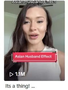 随着这个梗的越来越火,前两天,有一位名叫Kaylee b的网红妹纸跳出来表示,大家不要只关注“黑人妻子效应”了!都来看看“Asian Husband Effect(亚洲老公效应)”吧!
