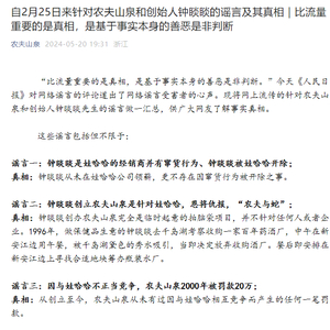 4.农夫山泉从未发表过酸碱体质理论,更没有被央视3.15点名。