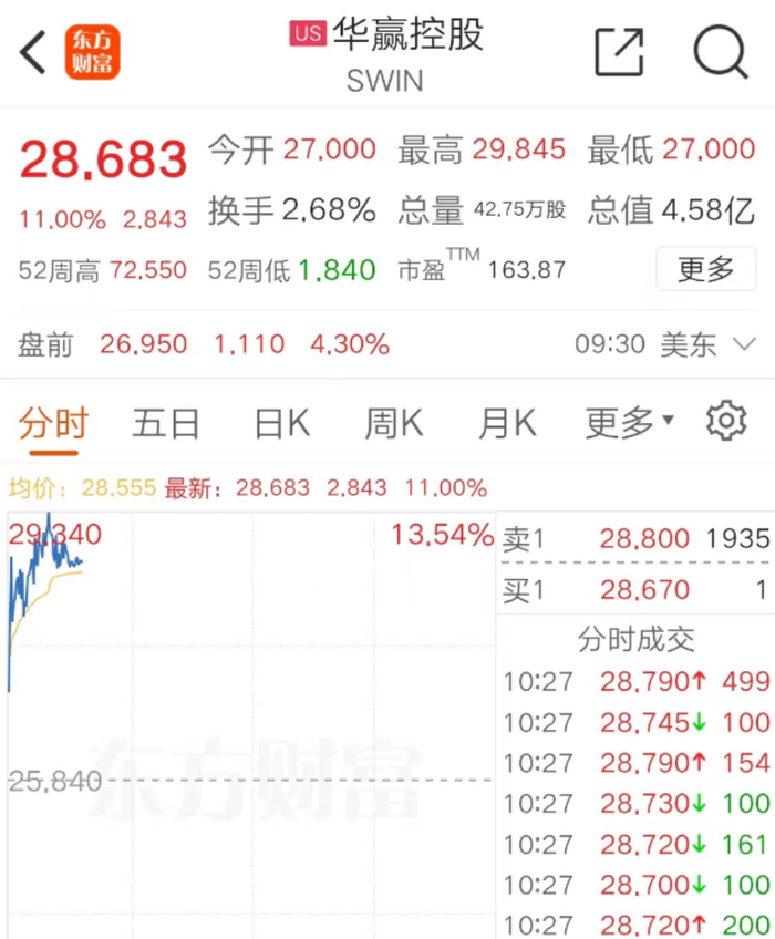 券商中国记者注意到,在美上市的中国券商股,除了海川证券外,还有一只也在狂飙,这只股票就是华赢控股。