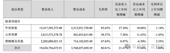 对于古井贡酒来说,年份原浆系列是企业的主要营收来源,营收占比高达75%左右,与此同时产品的毛利率更是高达85%以上,是业务发展以及赚钱的核心。