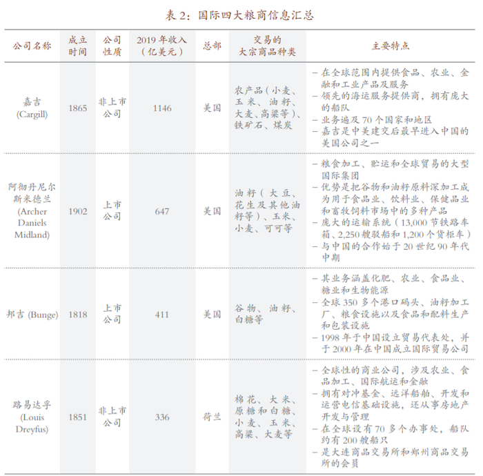 其中,能源、金属交易商主要是维多、嘉能可、托克、摩科瑞、科氏工业和贡沃尔(表1);国际四大粮商是指嘉吉、阿彻丹尼尔斯米德兰、邦吉与路易达孚(表2)。