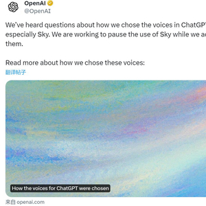 需要说明的是,ChatGPT的语音模式其实是在去年9月底推出的,当初一共发布了5款配音,引发争议的Sky也在其中。当然,引爆争议的源头,还是OpenAI上周在发布会上引入的“实时语音对话”。