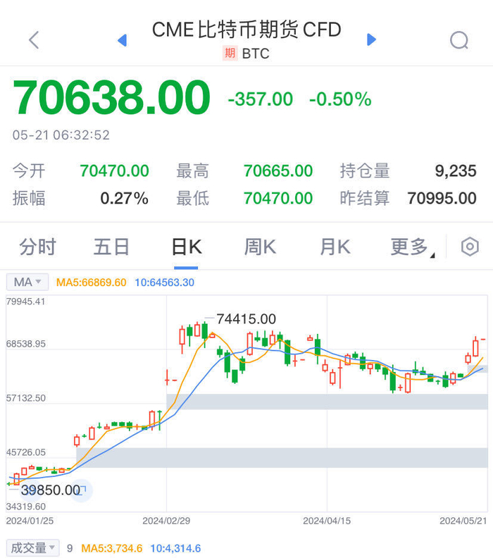截至发稿,比特币价格暂报70638美元。
