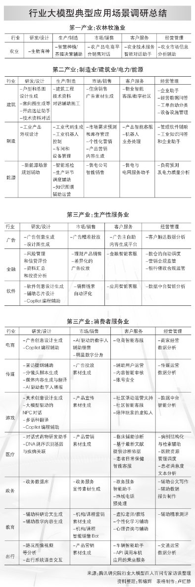腾讯研究院5月13日发布的《向AI而行,共筑新质生产力——行业大模型调研报告》(以下简称《报告》)认为,在“人工智能+”等重要政策指引下,行业大模型有望加速在传统行业落地应用,并在云智一体的基础设施支持下,朝多模态、人工智能体、端侧及小型化等方向发展,更深入嵌入各行业的工作流程中,从而促进生产力的提升。